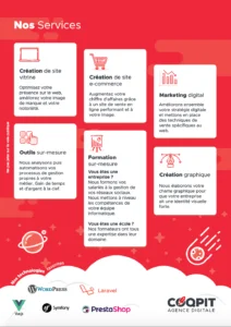 Depuis 2018, l’agence diversifie ses activités notamment avec la formation, le consulting ou bien le support en entreprise. Nous avons fait le choix d’afficher uniquement « Agence Digitale » afin de montrer que nos compétences sont aussi large que ce que peut supposer « Agence Digitale ».